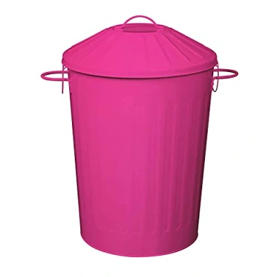 simpa 60L Colourful Vintage Style Metal Tapered Dustbins & Lids Pink 62cm (H) x 38cm (Dia)