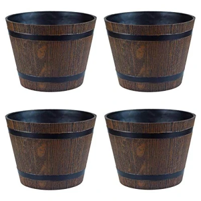 simpa Homestead Brown Half Barrel Indoor/Outdoor Cask Planter Small, 17cm (H) x 23cm (Dia) Set of 4.