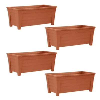 simpa Plastic Trough Garden Planter Pots 55cm Length BROWN, Set of 4 Suitable for Indoor or Outdoor Use with DIY Drainage Holes.