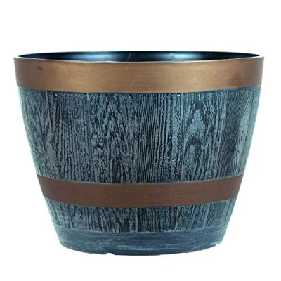 simpa Rustic Style Dark Grey Plastic Half Barrel Cask Planter 28.5cm Diameter Single Pot Indoor & Outdoor Pot.