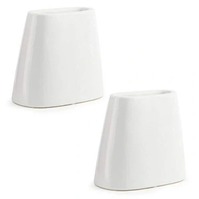 Simpa Set of 2 White Ceramic Umbrella Stands 20cm (H) x 17cm (L) 11cm (D) Each Stand Holds 4 Umbrellas.