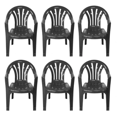 simpa Solana BLACK Stackable Low Back Plastic Garden Chairs Set of 6