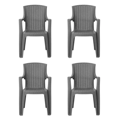 simpa Stackable High Back Plastic Rattan Effect Garden Chairs Grey Set of 4