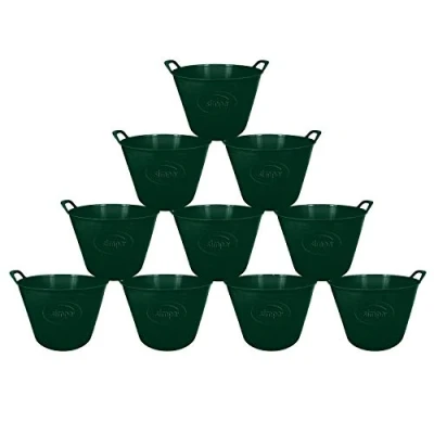 simpahome 42L 42 Litre Large Multi Purpose Flexi Tub DARK GREEN Robust Flexible Storage Container Bucket Set of 10.