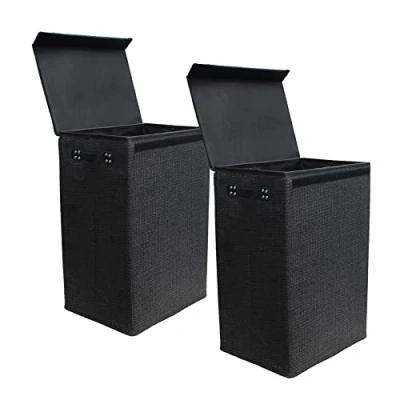 simpahome 72L Laundry Basket with Lid, Sturdy Foldable Woven Style Hamper Design Black 60cm (H) x 40cm (W) 30cm (L) Set of 2 Baskets