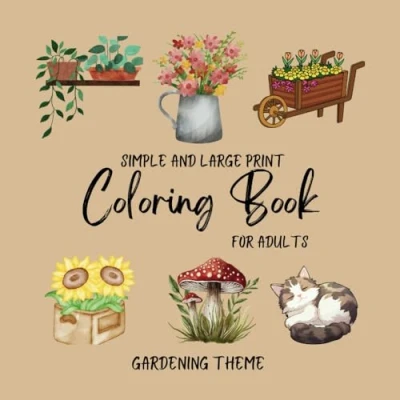 Simple and Large Print Coloring Book for Adults: Beginners, Seniors, Dementia, Alzheimer's, Parkinson's Patients (Gardening Theme)