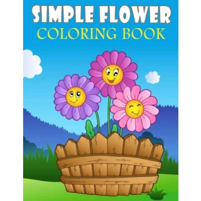 Simple Flower Coloring Book: 30 Easy And Beautiful Pages To Color Relax Gift For Kids Children Ages 5 12