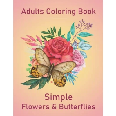 Simple Flowers and Butterflies in Large print Coloring Book for Adults: 50 Easy Adults, Seniors Women... Relaxation & Stress Relief.
