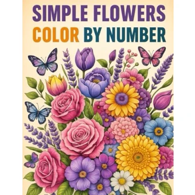 Simple Flowers Color By Number Coloring Book: Large Print Bold and Easy Flower For Adults Seniors Kids