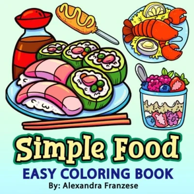 Simple Food Coloring Book: Bold and Easy Designs for Adults Kids, Large Print Images to Color (Easy Books)