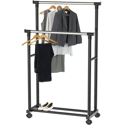 Simple Houseware Double Rod Portable Clothing Hanging Garment Rack