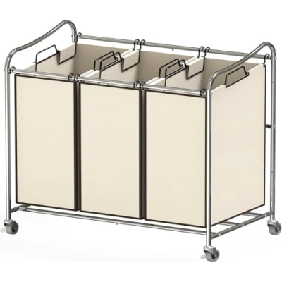 Simple Houseware Heavy Duty 3 Bag Laundry Sorter Cart, Chrome