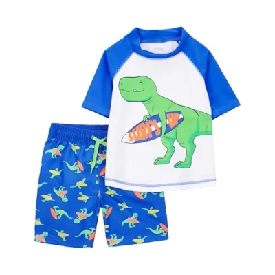 2-Piece Swim Set: Includes a rashguard top and matching swim bottoms, providing a complete and coordinated beach or pool outfit for easy styling. Versatile Sleeve Options: Available in both long and short sleeve options, giving flexibility to match different weather conditions and levels of sun protection. Fun Prints and Vibrant Colors: Features a variety of playful patterns and bright colors to keep your child looking stylish and excited to wear, perfect for summer vibes. Tagless Design: The tagless interior ensures a soft, irritation-free experience, keeping your child comfortable for hours of fun. UPF 50 Protection: Crafted with built-in UPF 50+ protection, helping shield sensitive skin from harmful UV rays, so they stay safe and comfortable outdoors. Quick-Dry Fabric: Made from lightweight, quick-drying materials to keep kids comfortable in and out of the water and reduce chill. Durable and Fade-Resistant: Designed to withstand sun, sand, and chlorine exposure, with high-quality materials that maintain their vibrant look and shape over time. OEKO-TEX Certified: Made from materials that meet the OEKO-TEX Standard 100, ensuring they are safe for delicate skin.