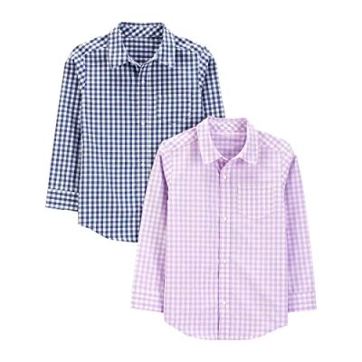 Simple Joys by Carter's Boys' Long Sleeve Woven Shirt, Pack of 2 Button, Blue Gingham Plaid/Purple Plaid, 8