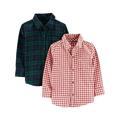 Simple Joys by Carter's Boys' Long Sleeve Woven Shirt, Pack of 2 Button, Green Plaid/Red Gingham Plaid, 12 Months
