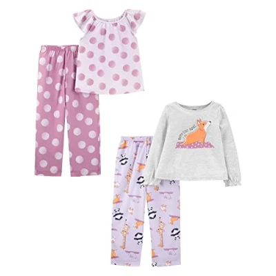 Simple Joys by Carter's Girls' 4 Piece Poly Pyjamas, Pack of 2, Forest Animals/Polka Dot/Yoga, 5 6 Years