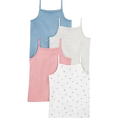 Simple Joys by Carter's Girls' Tank Tops, Pack of 4 Cami Shirt, Blue/Grey/Pink/White Floral, 5 6 Years