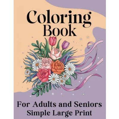 Simple Large Print Coloring Book for Adults and Seniors with Dementia: 50 Easy Relaxing Designs Featuring Flowers, Animals, Cute Foods Nature Scenes Alzheimer’s Dementia Patients