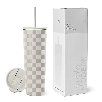 Simple Modern Insulated Tumbler with Lid and Straw Iced Coffee Cup Reusable Stainless Steel Water Bottle Travel Mug Gifts for Women Men Her Him Classic Collection 830ml Checkmate
