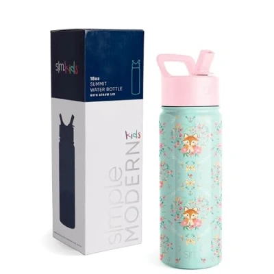 Simple Modern Kids Water Bottle with Straw Insulated Stainless Steel Reusable Tumbler for School, Girls, Boys Summit Collection 530ml Fox and The Flower