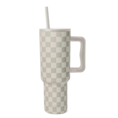 Simple Modern Tumbler 40 oz with Handle and Straw Insulated Stainless Steel Water Bottle Iced Coffee Cup Travel Mug Gifts for Women & Men Trek 1180ml Checkmate