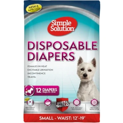 Simple Solution Disposable Dog Diapers For Female Dogs, True Fit, Absorbent, Leak Proof with Wetness Indicator, Puppy & Doggie Period Pad and Pee Diaper, Small Pets,1219 Inch Waist, 12 Count