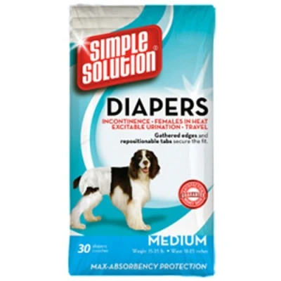 Simple Solution Disposable Medium Dog Diapers, 30 count,White