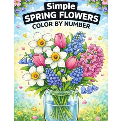 Simple Spring Flowers Color By Number Coloring Book: Large Print Season Easy For Adults, Seniors and Kids