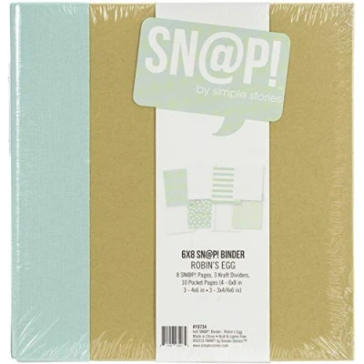 SIMPLE STORIES-Sn@p Life Collection: Binder It's your life in a snap This binder includes a variety of pages, pockets, and dividers so you can easily create a personalized album filled with your cherished memories The binder itself measures 8-3/4x8-3/8x2 inches and holds pages up to 8x6 inches in size It comes with eight Sn@p pages, three Kraft chipboard dividers, and ten Sn@p pocket pages to get you started and can also be filled with various other sheets of your own Each package contains one Sn@p Binder. Available in a variety of colors (each sold separately). Imported.