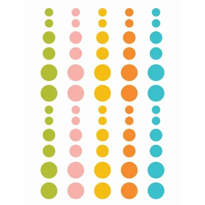Fun, unique embellishment for your projects! 60 pieces per card including aqua, yellow, peach, green, red. The circles measure approx. 3 mm to 8 mm across. 6231 SI6231 SI6231 MPN 6231