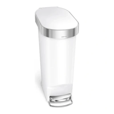 simplehuman 40L Slim Kitchen Pedal Bin with Liner Rim, Silent Soft Close Lid, White Plastic, W 51.30cm x H 61.50cm D 26.00cm