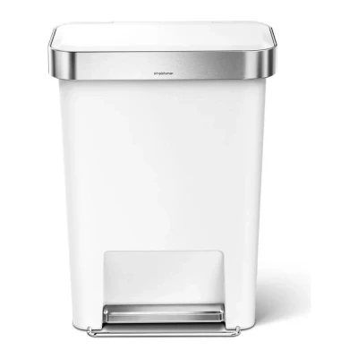 simplehuman 45L Rectangular Pedal Bin with Liner Pocket, Silent Soft Close Lid, Strong Wide Steel Pedal, White Plastic CW1387CB