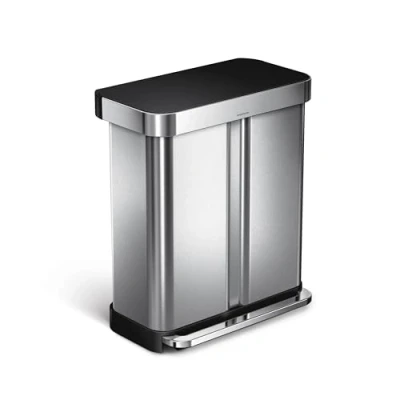 JoybuyThe Simplehuman 58L Recycling Rectangular Pedal Bin features dual compartments for easy waste sorting, a unique liner rim and built-in liner pocket for quick changes, and a fingerprint-resistant brushed stainless steel finish. It includes a strong steel pedal, silent-close lid, and space-saving design for efficient, hygienic recycling.