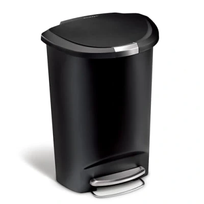 simplehuman CW1355 50L Semi Round Kitchen Pedal Bin with Lid Lock, Silent Soft Close Lid, Strong Steel Pedal, Stay Open Large Capacity, Black Plastic