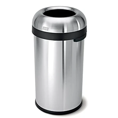 simplehuman CW1407 60L Bullet Open Office Business Commercial Bin, Large Capacity, Dent Resistant, Lift Off Lid, Side Handles, Non Skid Base, Brushed Heavy Gauge Stainless Steel