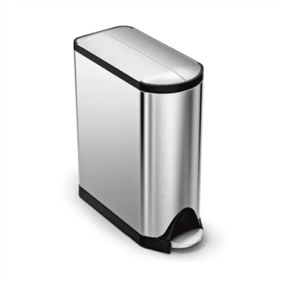 butterfly lid: Split doors open from the centre for maximum clearance under low countertops. strong steel pedal: Our strong steel pedal is engineered to last over 150,000 steps – that's more than 20 steps a day for 20 years. silent close lid: Our patented lid shox technology controls the motion of the lid for a slow, silent close. internal hinge: Allows you to place this bin right up against the wall. stay-open lid: The lid stays open for as long as you like – perfect for longer chores.