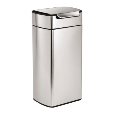 easy open touch-bar: Our touch-bar is easy to open from any angle. If your hands are full, just tap with your elbow, bump with your hip or nudge with your knee - the possibilities are endless! space-efficient hinge: Our specially shaped sleek hinge is designed to move up and out of the way for the widest opening possible. smooth and even: Unique dampers and precisely angled springs control the lid so it opens smoothly and evenly. stay-open lid: The lid stays open for as long as you like – great for food prep during cooking or long chores. lift-off lid: Lid lifts off easily for a quick bag change. Innovative design touch-bar bin making waste disposal easy, tap the bar with your hand, elbow or bump with your hip or nudge with your knee! The design is very space efficient and the internal hinge means it will fit right up against the wall just about anywhere in the kitchen. Simplehuman fingerprint-proof finish resists smudges to keep the stainless steel looking good for longer The bin is easily emptied when full by removing the top lid section, this allows you to remove and dispose of the rubbish inside Designed so that the top cover will hide any messy bag liner overhang keeping your bin looking good