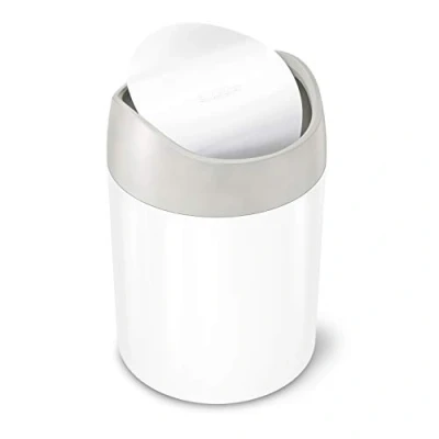 simplehuman CW2079 1.5L Mini Bin, Kitchen Tabletop, Desktop or Dressing Table, Balanced Swing Lid, Lift Off Easy to Clean, White Steel