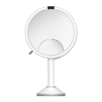 simplehuman ST3038 20cm Sensor Mirror Trio with Touch Control Brightness, Light Up Makeup Magnifying Mirror, 10x, 5x, 1x Magnification, LED, Dual Setting, Rechargeable, White Stainless Steel