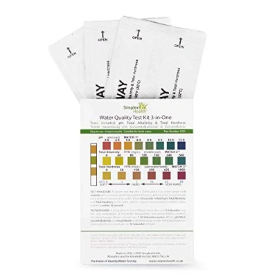SimplexHealth Home Water Test Kit 3 in One (5 Strips) Drinking Water, ponds, aquariums for Total Hardness, Alkalinity and pH