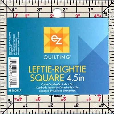 Size: 11cm (4.5") x 11cm (4.5") Marked for both right and left handed users Numbers read correctly any way the ruler is turned 45 lines for centering when squaring up blocks Useful for cutting squares and trimmings blocks to size. 1/4" markings