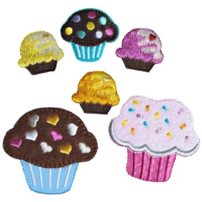 Simplicity assorted cupcakes multi pack applique Sweeten up your kitchen with bright & fun embroidered embellishments Value pack includes 6 pcs ranging from 2.5cm to 5cmIron on multi pack appliques features a variety of different sizes and colours cupcakes, with embroidered details Washable
