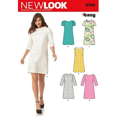 New Look "easy" sewing pattern 6145 Misses' knee length shift dress Size: A(8-10-12-14-16-18) Number of looks: 5
