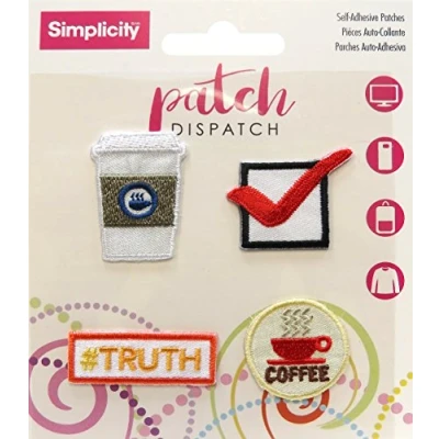 Simplicity Patch Dispatch Self Adhesive Appliques Coffee Check Pack 4Pc, Polyester, Multicolour, 10.31 x 11.68 0.18 cm