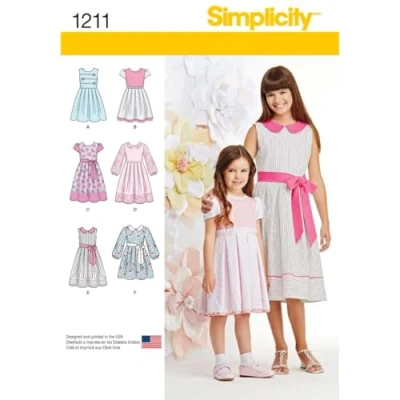 Simplicity sewing pattern 1211.K5 Child's and Girls' Dress in two lengths Size: K5 (7-8-10-12-14) Number of looks: 6