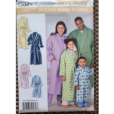 Simplicity "easy-to-sew" sewing pattern 1562.A Child's, Teens' and Adults' Robe and Belt Size: A (XS - L / XS - XL) Number of looks: 1