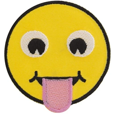 This iron-on applique design features a tongue out smiley Emoji, which can be ironed on apparel, totes, backpacks or pillows. This embroidered applique can be sewn onto your project fabric for permanent application. Quick and easy to add to your projects