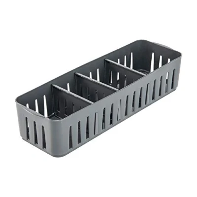 Simplify Stackable Organizer Bin with Adjustable Dividers, 4 Compartment Storage Basket, Good for Office, Home & Dorm, Polypropylene, Grey, 1 Pack
