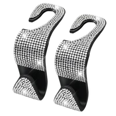 Simply Auto Car Headrest Hooks, Universal Fit, Plastic, Silver, Set of 2