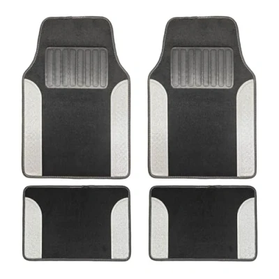 Simply Auto Silver Car Mats 4 Piece Set (Front & Rear) Non Slip Floor with Raised Heel Pads Durable PVC Blanket Material Sparkle Edges Universal Fit